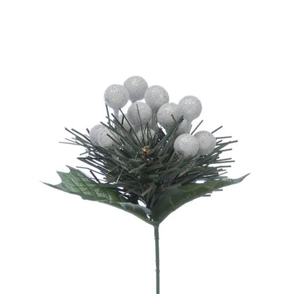 Bring a touch of winter sparkle to your Christmas décor with this elegant 19cm Silver Frosted Berry Pick. Featuring shimmering silver berries nestled among lush green foliage, this decorative pick adds instant frosty charm to any festive arrangement.