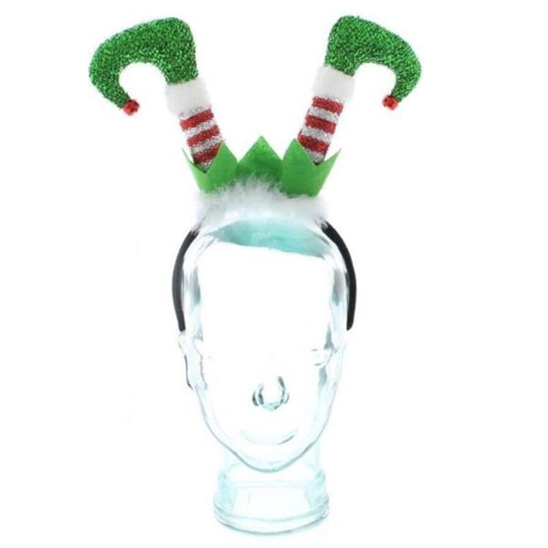 Add some festive fun to your celebrations with this playful 35cm Green & Red Elf Legs Headband. Featuring glittery elf legs with striped red and white stockings, topped with a fluffy white trim and bright green accents, this novelty headband is perfect for Christmas parties, festive events, or just spreading holiday cheer.