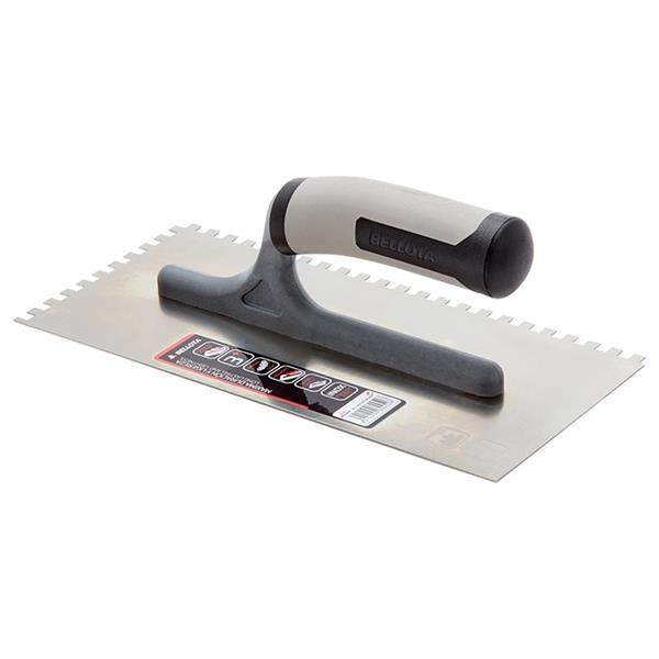 Professional U notched trowel with high quality flexible stainless steel blade, maximum durability without deterioration. Perfectly flat blade to guarantee a perfect finish and perfectly fitted. Ergonomic bi-material open handle, very lightweight, temperature resistant and non-slip. For tiling and flooring work
