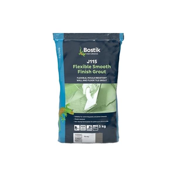 Bostik J115 Flexible Smooth Finish Grout is a professional quality, cementitious polymer modified grout for walls and floors. It is formulated to provide narrow and wide joints. This flexible white grout is an easy clean off, non slump formulation and sets in 12 hours to a very hard finish. It is also mould and efflorescence resistant. Suitable for use with a variety of tile types including ceramic, porcelain, natural stone, mosaic, marble and quarry tiles. It is suitable for joints between 2mm and 15mm for both interior and exterior use. Flexible white grout with ultra smooth finish Non-slump formulation for joints between 2mm and 15mm wide Ideal for swimming pools and power showers Suitable for use with underfloor heating Mould resistant Efflorescence resistant Sets in 12 hours For interior and exterior use