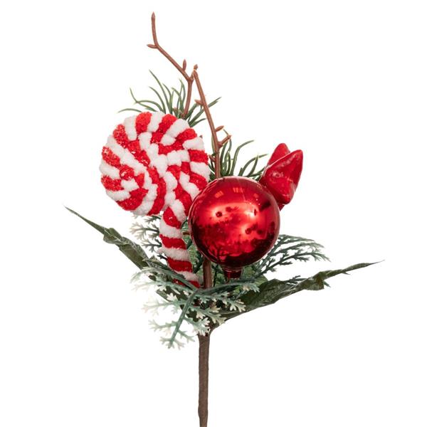 Enhance your holiday decor with our Christmas Candy Cane Lane Green Pick With Ornaments 22cm. This beautifully crafted decoration is perfect for adding a touch of festive charm to your Christmas tree or wreath. Its vibrant colors and delightful ornaments make it an eye-catching detail that brings the spirit of the season to life.