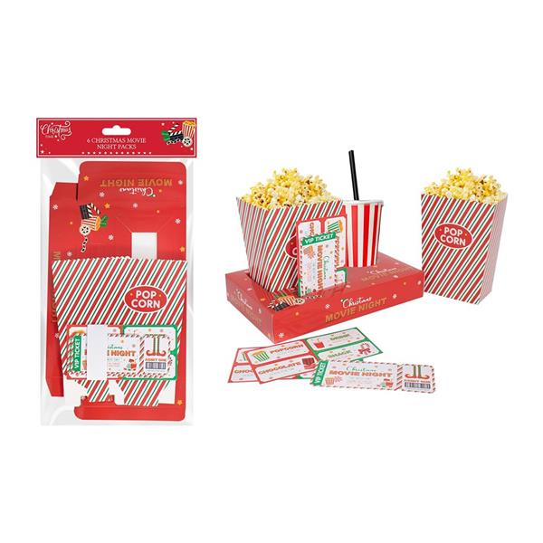 Each pack includes popcorn boxes, drink cups, and fun movie tickets, all in a charming red-and-white candy-stripe Christmas design. Ideal for watching your favourite holiday films, hosting festive parties, or adding a special touch to Christmas Eve traditions.