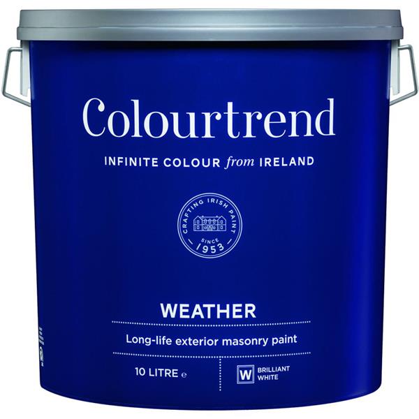 Colourtrend Weather exterior masonry paint is a pure acrylic, premium quality paint specially formulated to meet the demands of Irish weather—good and bad—to give your home longer lasting good looks. Colourtrend Weather is mould and mildew resistant, has excellent spread and coverage, is easy to clean and resists dirt pick-up.
