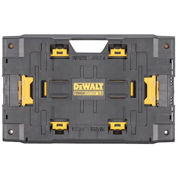 The DEWALT DWST08017-1 TOUGHSYSTEM to T-STAK Adaptor is a connector platform designed to integrate DEWALT storage systems, allowing TOUGHSYSTEM® 2.0 modules to work together with TSTAK™ modules and TOUGHCASE® sets. It provides a practical way to build a single, organised transport and storage setup across different DEWALT system ranges.
