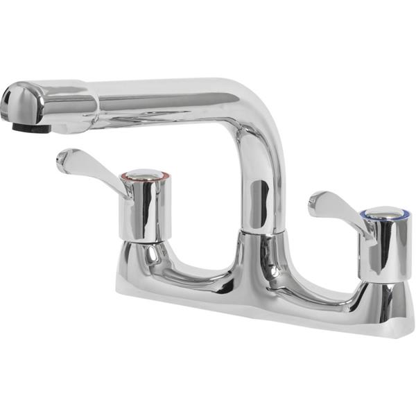 The Eirline Dual Flow Lever Deck Sink Mixer Is A Classic Yet Convenient Mixer With Lever Handles For Ease Of Use. The Handles Feature Quarter Turn Ceramic Discs For Better Flow Control. Resistant To Rust And Corrosion Stylish Chrome Finish Tap Featuring Full 360° Swivel Spout
