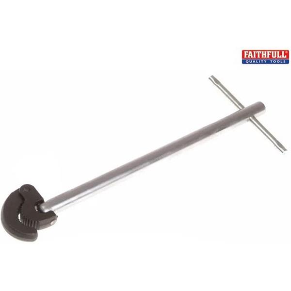 These Faithfull basin wrenches have adjustable spring action jaws that maintain an automatic grip on pipe fittings. The forged steel jaws turn 180° for greater flexibility. Essential tool for use on compression fittings, copper or polythene, on basins and baths.