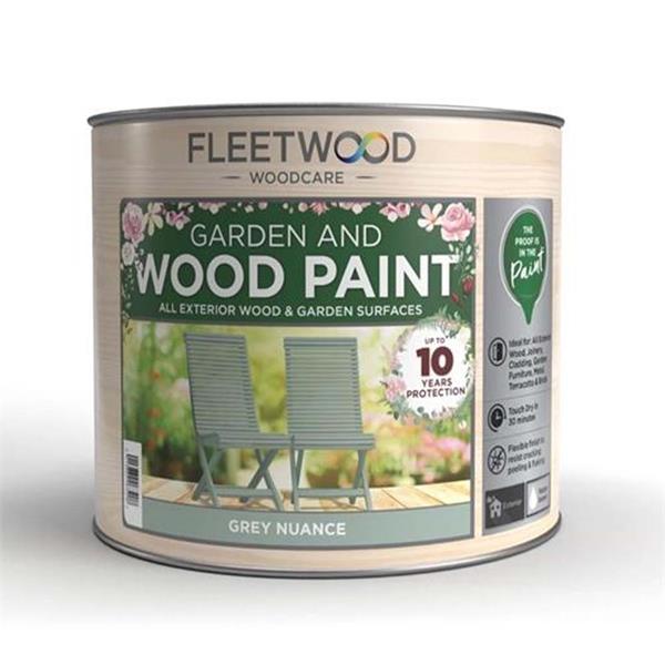 Fleetwood Garden Paint Grey Nuance 750ml a premium water-based outdoor paint designed to protect and enhance wood and garden surfaces. Delivering a rich Birch Bark colour finish, this high-quality paint combines long-lasting durability with easy application, making it ideal for refreshing and protecting outdoor spaces. Perfect for garden furniture, sheds, fences, planters, and other exterior wood, this paint provides reliable protection against weathering while maintaining a smooth, attractive appearance. Its quick-drying, low-odour formula ensures a comfortable painting experience and faster project completion. Proudly made in Ireland, Fleetwood Garden and Wood Paint is washable, hardwearing, and offers up to 10 years of protection, helping keep outdoor wood looking vibrant and well-maintained for years to come.