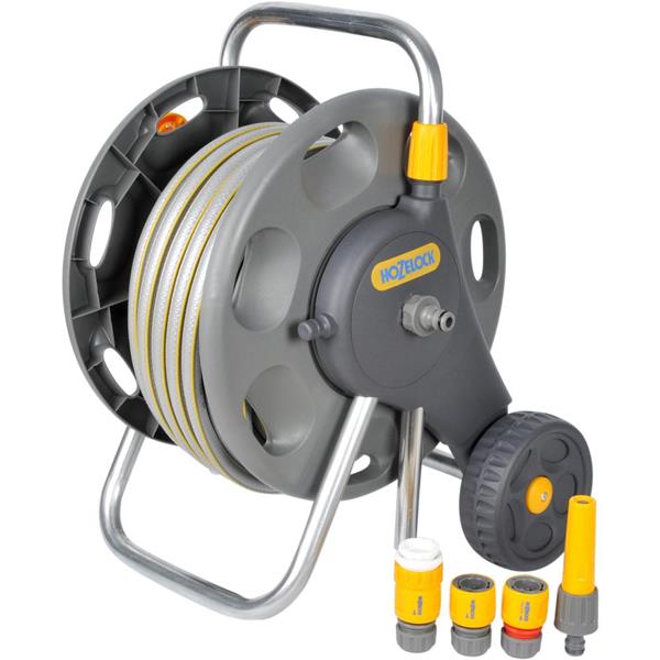 Comes ready assembled allowing you to get straight to work Robust and durable Supplied with 30 m of Hozelock braided starter hose, ideal for general purpose use Reel protects your hose and helps to prevent kinks and tangles One piece winding handle and sturdy frame allows for quick and easy rewinding
