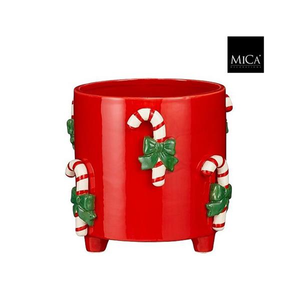 Bring festive fun to your home with this bright and cheerful Candy Cane Planter (21 cm) from Mica Decorations.Made from high-quality dolomite, this glossy red planter is decorated with raised candy cane and green bow details, making it a perfect accent piece for your Christmas décor.