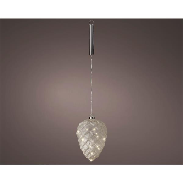 Add a touch of elegance and charm to your indoor space with this stunning micro LED pinecone decoration. Measuring 21cm in length, this frosted pinecone is the perfect addition to any holiday display or winter-themed decor.