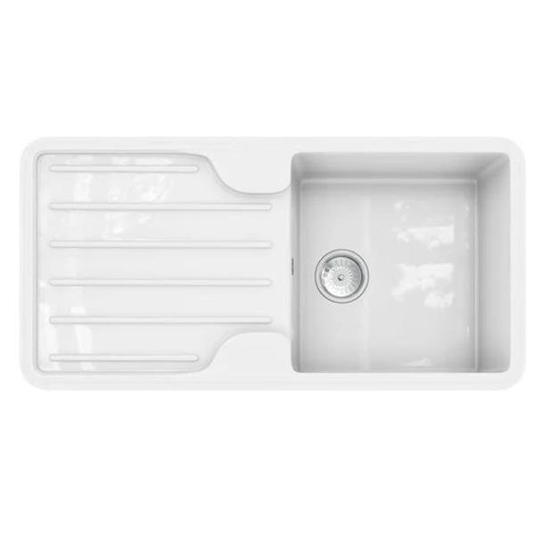 The NORI composite range, where traditional meets modern. The high gloss finish makes it an eye catcher, featuring a recessed drainer with statement lines and a spacious bowl. Pair the NORI with a traditional tap like the ELSA and you will certainly complete the farmhouse feel.