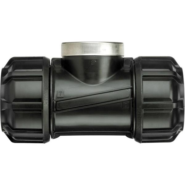 The Philmac NG Tee Pol x FI 1 1/2" x 1 1/2" is a heavy-duty and easy-to-install fitting designed for branching larger pipe systems in domestic, agricultural, and commercial water applications. Ideal for both professionals and experienced DIY users, this tee provides a secure connection between push-fit pipe and female threaded outlets.