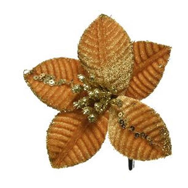 2cm decorative poinsettia with velvet glitter petals