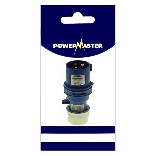 The Powermaster Plug - CEE 220V 16A 2P+E has the degree of protection: IP44 - damp proof. It is rated current: 16A and voltage: AC 220-250V. It features blue plastic casing and contains one socket. It has hassle free, easy to open polyurethane packaging. The socket is used to join a 16A 2P+E plug in a damp proof setting. It requires standard installation tools and should only be installed by a competent, qualified person.