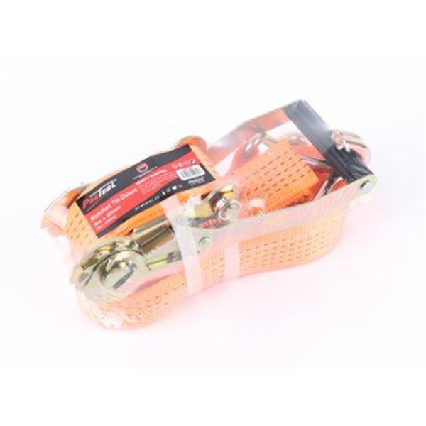 ProTool Ratchet Tie Down 8m X 50mm firmly secures loads quickly and efficiently. Used in the transport, building industries, home and more outdoor activities. Max Loading: 3000kg Length: 8m Width: 50mm For strapping down timber, steel, straw, hay, machinery, mobile homes in winter and in transporting goods by trailer etc.