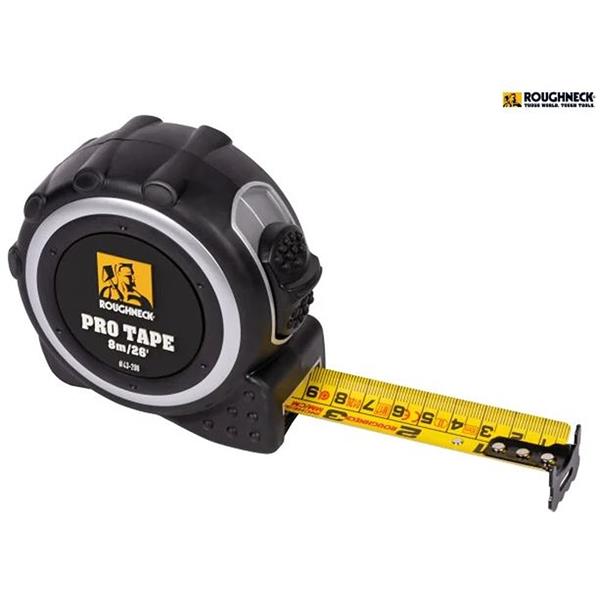 The Roughneck E-Z Read® Tape Measure is a premium grade product designed with the professional in mind. The outer casing is manufactured from a non-slip, shockproof rubber and is further complimented with a strong metal belt clip and powerful blade brake. The rustproof blade is nylon coated for maximum durability, with metric and imperial graduations and is fitted with a 3 rivet reinforced end hook. E-Z Read® blades, where every 1/8in is marked for easy reading, stud marking every 16in and truss marking every 40cm.