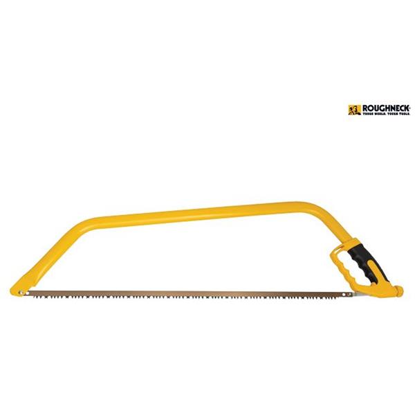 Roughneck Bow Saw with a large, thick steel frame which provides excellent strength and rigidity. It has an easy blade tensioner, and the soft grip handle with knuckle protection ensures comfortable use.