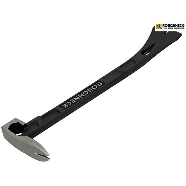 The Roughneck® Gorilla Moulding Bar has a wide jaw end, ideal for scraping and prying trim from walls. The head features a striking face allowing the bevelled jaws to be punched deep into the material to pry out embedded nails. Drop-forged hardened and tempered steel construction for extreme strength and durability. It also has polished tips and 2 x nail removers