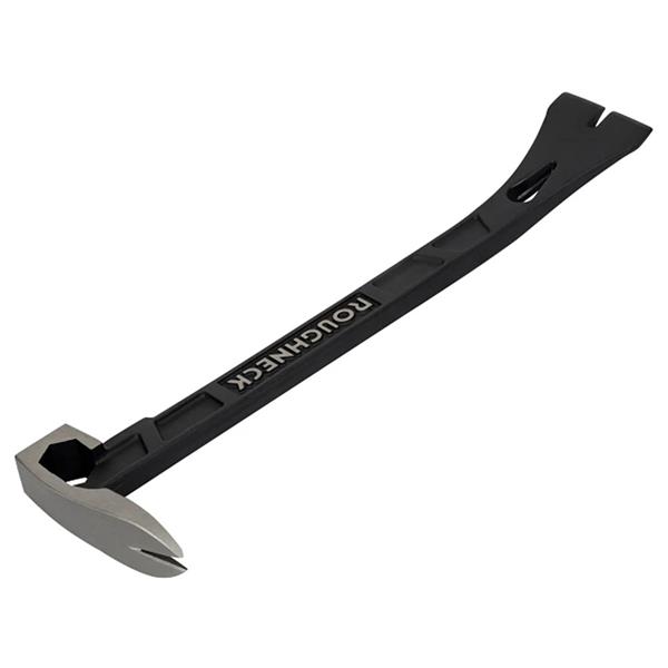The Roughneck® Gorilla Moulding Bar has a wide jaw end, ideal for scraping and prying trim from walls. The head features a striking face allowing the bevelled jaws to be punched deep into the material to pry out embedded nails. Drop-forged hardened and tempered steel construction for extreme strength and durability. It also has polished tips and 2 x nail removers