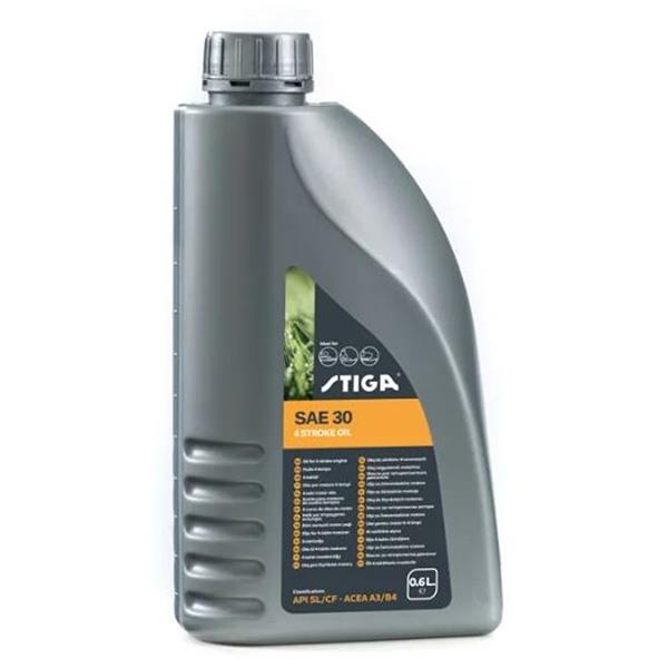 The STIGA 4-Stroke Mower Oil 600ml is an SAE 30 engine oil designed for use in 4-stroke lawn mowers and garden tractors, helping ensure reliable lubrication and smooth operation during routine cutting and maintenance work.
