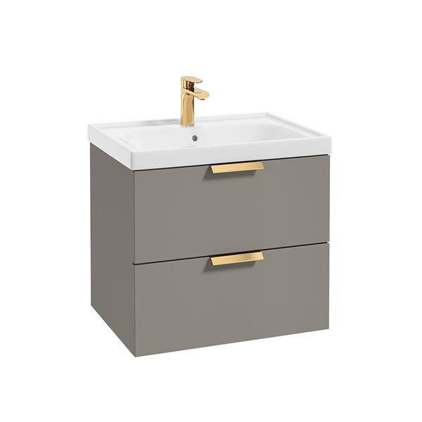 STOCKHOLM Khaki Matt 60cm Wall Hung Vanity Unit - Brushed Gold Handle Additional Information: Drawers are metal box soft closing, Charcoal Interiors, Matching Wall Columns, Units are constructed Using 18mm MDF, 2 Drawer , W600 x D 450 mm , Brushed Gold Handles , Tap and Waste Not Included , Furniture Base Units Pre Assembled , Always ensure bathroom has sufficient ventilation , To care for your product please ensure your bathroom is well ventilated from condensation. Our bathroom furniture is water resistant but excess water should be avoided. Regular cleaning with a soft damp cloth is recommended.