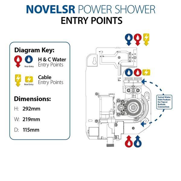Featuring our Quiet Mark approved, quiet pump technology for a relaxing shower experience, the Triton Novel SR power shower is the perfect solution for those with low pressure systems. Providing thermostatic temperature control, and delivering a flow rate of up to 14 litres per minute, the Novel SR provides a continuous running performance, ensuring there is no waiting around between showers for busy families.