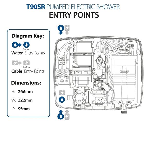 T90SR is a blissfully quiet running pumped electric shower, perfectly suited for use with low pressure water systems.