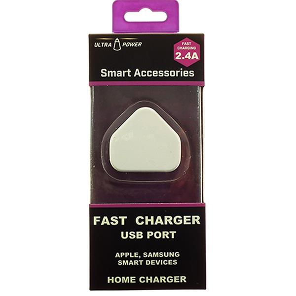 Ultra Power Smart Accessories USB Fast Charger Ultra fast charger 1 x USB ports Fast charging 2.4A Apple, Samsung, Smart Devices Colour: white