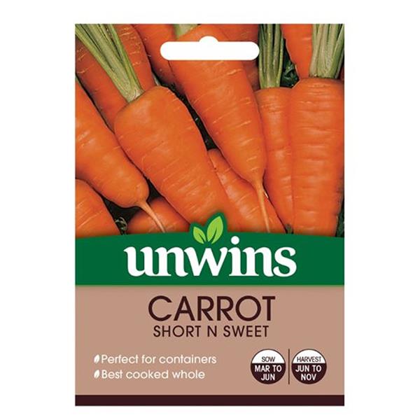 Grow delicious, compact carrots at home with the Carrot Short and Sweet Seeds, a reliable patio-friendly variety ideal for containers, raised beds, and small gardens. Producing smooth, sweet-tasting roots, this carrot is best cooked whole and harvested young for maximum flavour and tenderness. With a generous seed count and an extended sowing window from March to June, it delivers consistent crops throughout the summer and autumn.