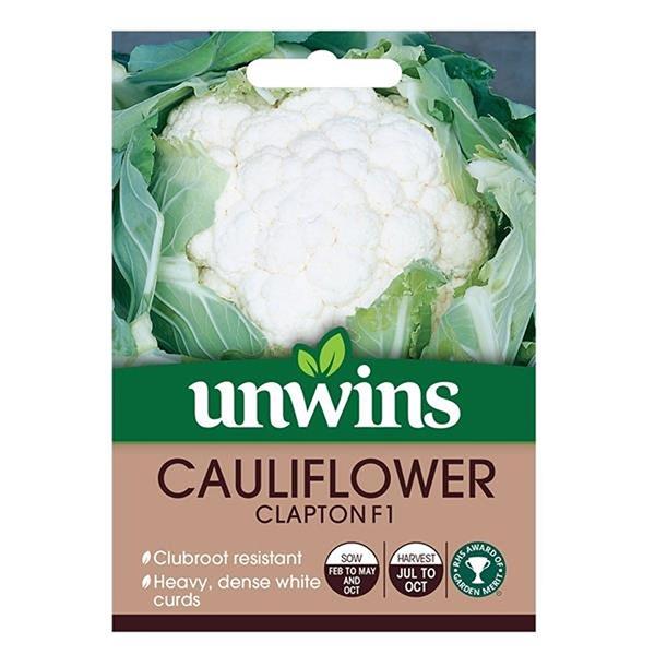 Grow reliable, high-quality cauliflowers with Unwins Cauliflower Clapton F1 Seeds, a modern variety bred for strong disease resistance and consistent performance. This robust F1 hybrid produces heavy, dense white curds with excellent flavour, well protected by vigorous outer leaf growth to maintain quality throughout development. With proven clubroot resistance, Clapton F1 is an excellent choice for gardeners growing brassicas in challenging soil conditions.
