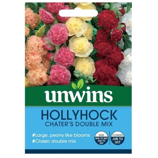 Hollyhock Chaters Double provide a magnificent arrangement of colour from their large, double flowers. Their flowers are so full they look like big pom-poms. This mix comes in white, yellow, crimson, pink, purple, rose, and red and creates a theatrical display for both contemporary and traditional gardens. They’re tall so plant them at the back of a bed or border where they’ll attract butterflies and bees. They will flower all summer long and provide your garden with drama.