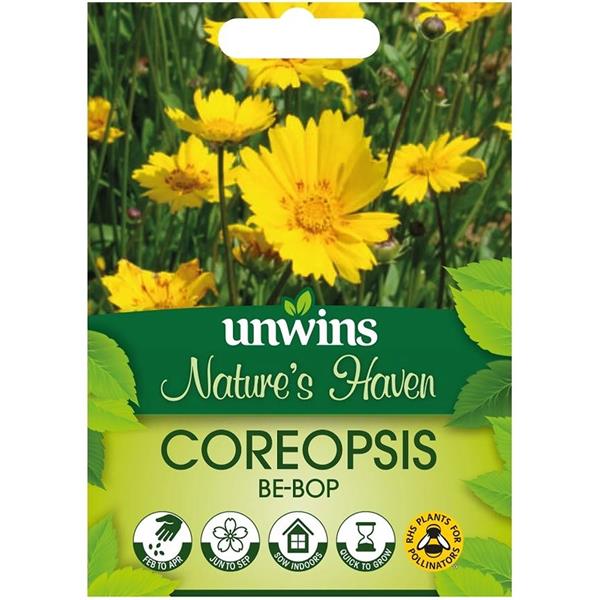 Ideal for pots, Coreopsis Be-Bop is quick to grow and has abundant bright yellow flowers throughout summer. This hardy perennial is loved by bees and butterflies and is an RHS Pollinator plant.