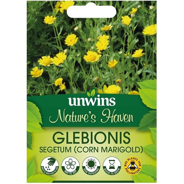 Brighten your garden with the vibrant yellow blooms of the Unwins Corn Marigold Seeds, a cheerful native wildflower known for its long flowering period throughout summer. Producing classic golden daisy-like flowers, this variety is excellent for attracting bees and a wide range of pollinators, while also providing beautiful stems for cutting. As an RHS Pollinator plant, it supports healthy wildlife activity in borders, meadows, and containers.