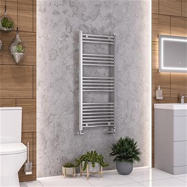 A modern curved ladder towel rail, available in a vast array of sizes, which is ideal for all type of bathrooms, cloakrooms or kitchens. The Wendover Curved range is available in chrome and gloss white, along with matching radiator valves.FEATURES• 22mm diameter horizontal round tubes.• 40 x 30mm vertical profiles.• Tested to BS EN442 standards.• 5 Year Manufacturer’s Warranty*• Can be single, dual fuel or all electric.* With conditions.